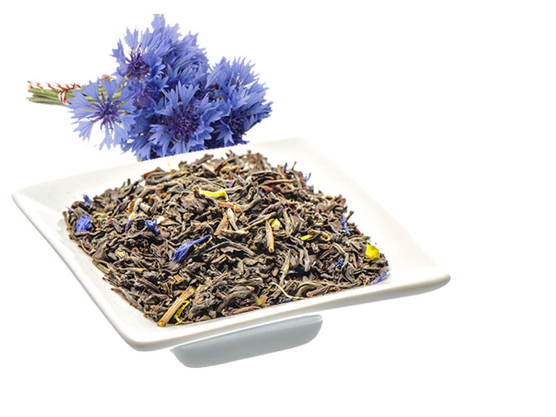 Black flavored tea, cornflower petals, blue mallow flower. Package: 100g.